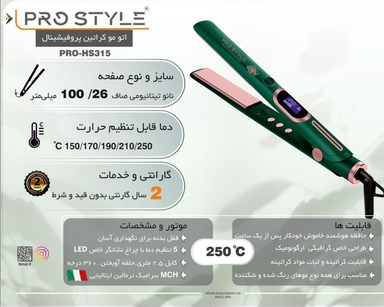 اتو مو کراتین پروفیشینال پرو استایل مدلProfessional Keratin PRO-S315