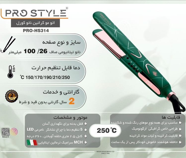 اتو مو کراتین نانو کورل پرو استایل مدل Corrale Nano PRO-S314
